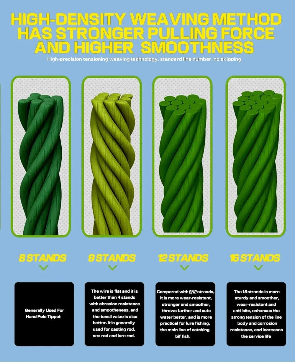✅ ⏳ Long Lifespan – Outperforms traditional 4, 8, 9, and 12-strand lines in durability.