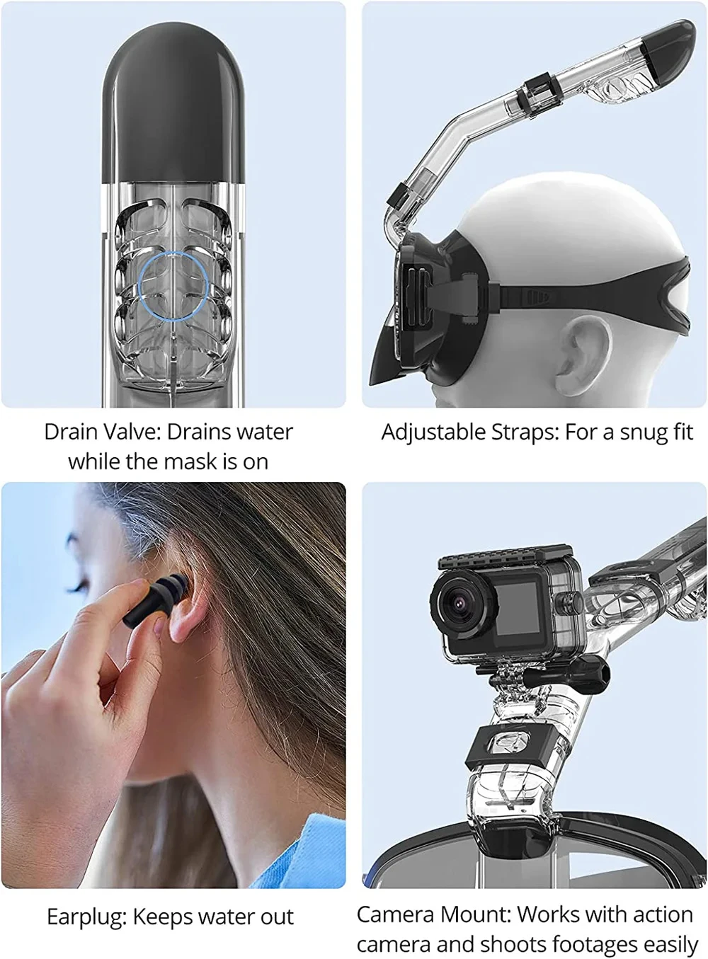 ✔ 💨 Safety Airflow System – Fully dry snorkel system prevents water from entering, ensuring a smooth and effortless breathing experience.